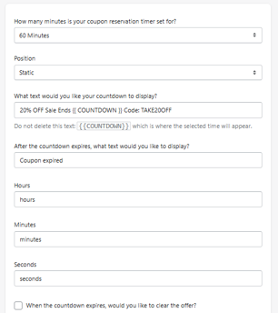 How many minutes is your coupon reservation timer set for?