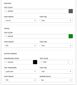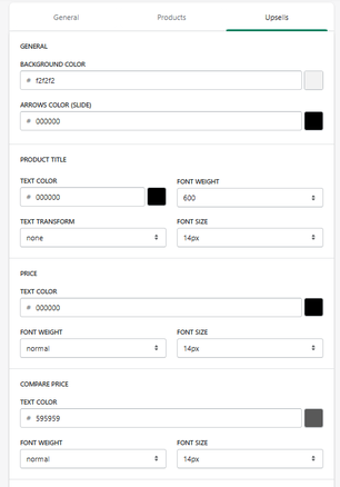 The Upsells tab allows you to customize the visual appearance of upsell product blocks displayed inside the slide cart.