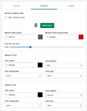 This section allows you to customize the appearance of the cart body and all product-related elements inside the slide cart.