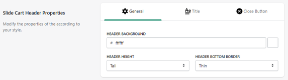 Slide Cart Header Properties