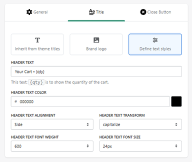 The Title tab allows you to customize the content and styling of the cart header title.