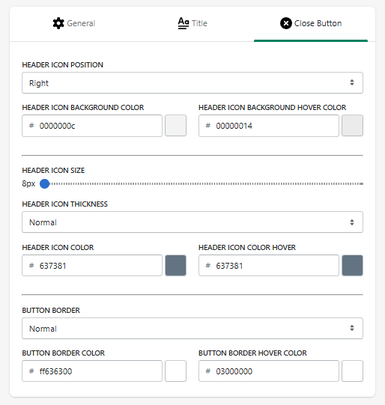 - Close Button → close icon customization