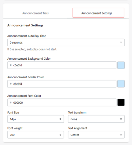 The Announcement Tiers section allows you to create and manage one or multiple announcement messages.