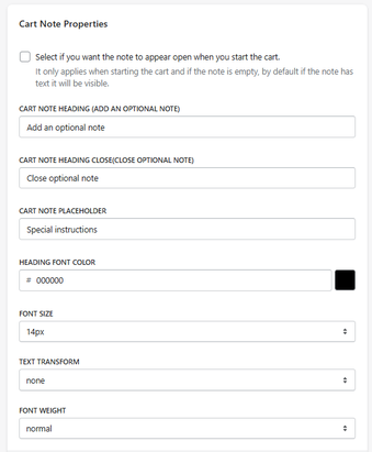 The Cart Note feature allows you to add a note field inside the slide cart, enabling customers to include special instructions with their order.