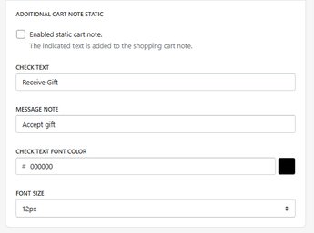 This option allows you to add a predefined message or checkbox that appends text to the cart note.