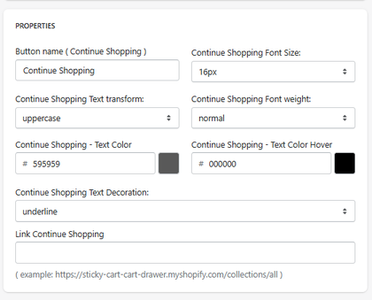 The Continue Shopping feature allows you to display a button inside the slide cart that lets users return to browsing your store.
